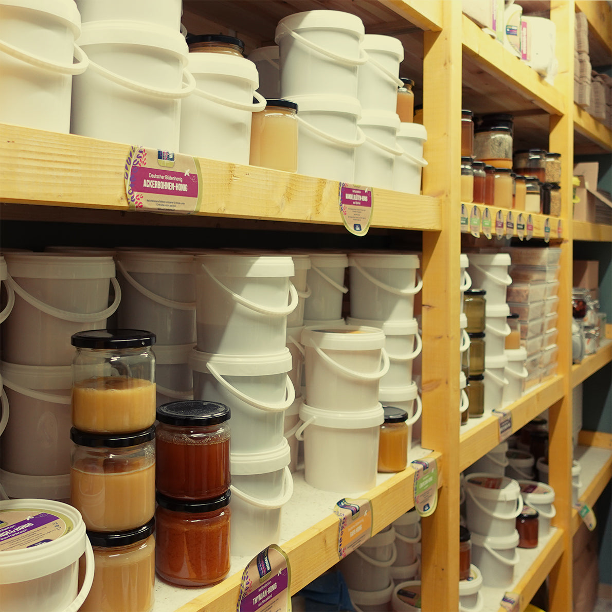 Unser Honig wird konstant in einem trockenen, dunklen und kühlen Raum gelagert. Unser Kellerraum bietet im Winter eine Innentemperatur von 8°C und im Sommer von 12°C, was ideale Bedingungen für die Aufbewahrung des Honigs gewährleistet.