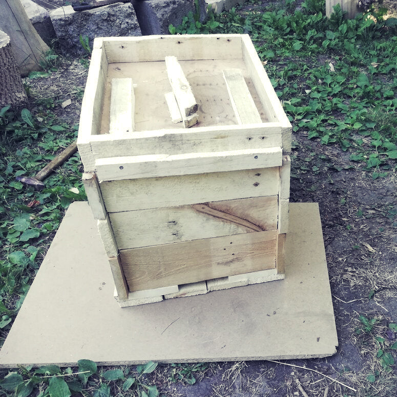 Mit Palettenholz und einer Asbest-Wellenplatte (ja, das waren tatsächlich noch andere Zeiten) baute ich eine einfache, aber funktionsfähige Beute. Ich stellte sie auf unseren Balkon auf. Doch die Bienen ließen auf sich warten.